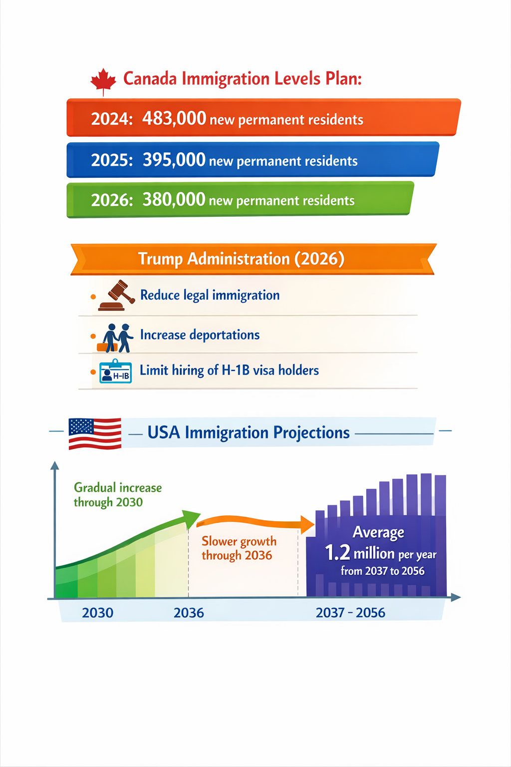 - Canada’s moderated immigration intake: After record immigration levels in 2024, Canada’s 2026-2028 immigration plan calls for a clear reduction in new arrivals, signaling a pullback from aggressive population growth strategies previously pursued through immigration (Source: OALep).