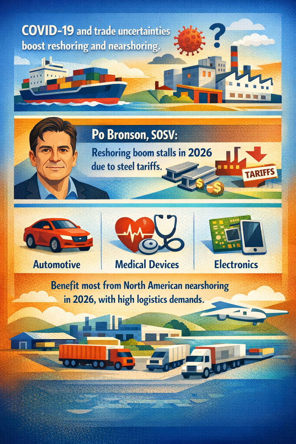 The global supply chain landscape is undergoing profound transformation. Nearshoring—the practice of relocating manufacturing closer to end markets—has accelerated notably in North America, especially in Mexico and Central America, as firms seek to reduce lead times, transportation costs, and vulnerability to overseas disruptions (ITSTraffic, 2026). Concurrently, friendshoring and regionalized manufacturing strategies are realigning demand corridors, with firms looking to diversify supplier bases beyond traditional hubs in Asia to buffer geopolitical volatility, particularly between the U.S. and China (FTI Consulting).